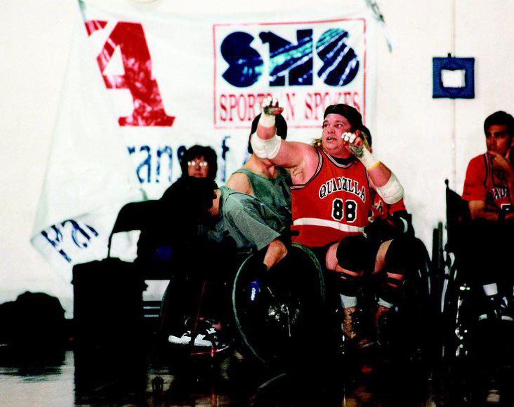 In 2001 he was selected as USQRA’s athlete of the year. He continued to make National teams when others his age were retiring. He even made his own Rugby Chair which was unheard of in the sport. He was anything but orthodox playing in work boots most of his career sporting the look of a burley construction worker.